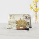 Encantadora y bucólica escena con el pájaro de la flor del cerezo como fondo + corte en papel de un Ox con sombra de gota + Feliz Año Nuevo en chino + 2021 + Año del Ox (imágenes de texto dorado con filtro de Zazzle). Diseño en tarjeta de felicitación horizontal estándar con el mismo fondo invertido dentro de la tarjeta + imagen impresa de papel texturado hecho a mano vietnamita como fondo para sus deseos. Cartel postal, invitación, productos artesanales y más...... Perfecto para un romántico Año Nuevo Chino del x 2021.