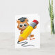 Un búho educado que escribe con un lápiz grande. Este diseño parece realmente efectivo en esta tarjeta de felicitación