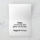 Esta tonta tarjeta de cumpleaños muestra el dicho, "Así que escuché que querías una NUEVA BICICLETA para tu cumpleaños..." y una silueta de una bicicleta al frente. En el interior dice: "Espero que alguien más te dé uno. ¡Feliz cumpleaños!"