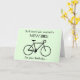 Esta tonta tarjeta de cumpleaños muestra el dicho, "Así que escuché que querías una NUEVA BICICLETA para tu cumpleaños..." y una silueta de una bicicleta al frente. En el interior dice: "¡El que está delante de esta tarjeta sólo tendrá que hacer! ¡Feliz cumpleaños!"