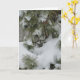 Fotografía de animales de la naturaleza, de un gorrión en un árbol verde y nevado, y un saludo de invierno componen esta carta.