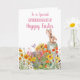 La Tarjeta Especial de Nieta Conejo Vintage, cuenta con una Bendición de Pascua solo para una nieta especial el día de Pascua y en el interior un conejo vintage recogiendo flores con un diseño preestablecido único que se puede cambiar fácilmente para adaptarse a tus necesidades.