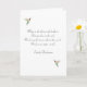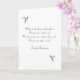 Esta tarjeta presenta colibríes de garganta rubí sobre un fondo blanco y una cita de Emily Dickinson. El mensaje interior es "En este momento de dolor y pérdida, queremos agradecerle por sus palabras de consuelo. Al compartir nuestra tristeza con otros, encontramos que nuestros corazones tienen una forma de sanar. Gracias por su apoyo durante nuestro momento de pérdida." El mensaje se puede cambiar, reemplazar o eliminar si se prefiere un mensaje escrito a mano.