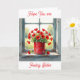 ¡Espero que te sientas mejor! Una tarjeta para un amigo o familiar que no se ha estado sintiendo bien. Una hermosa ilustración de acuarela con inteligencia artificial de amargas adormideras en una lata de café pintada de rojo sentada en el alféizar de una ventana en un día de verano.