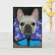 Una foto de primer plano de un lindo Bulldog francés llamado Wallace, mirando atentamente a la cámara, es el tema de mi tarjeta de cumpleaños "Hope Your Birthday Is Dog-Gone Happy" (Espero que tu cumpleaños sea feliz).