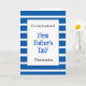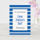 Esta es una tarjeta personalizada azul Feliz Primer Día del Padre para el marido, que puede ser personalizada en el frente con su nombre. En el interior de esta moderna tarjeta del Día del Primer Padre se lee un mensaje dulce, que se puede personalizar fácilmente si se desea. La parte trasera cuenta con un diseño a rayas que podrás personalizar con el año. Esto haría un maravilloso recuerdo para su primer Día de los Padres.