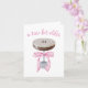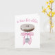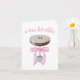 Esta tarjeta de saludo tiene un retrato acuarela de un espresso martini con un arco de cinta rosa atado alrededor de su tallo con la leyenda "un poquito más viejo".