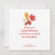 Una tarjeta de saludo colorida con elegante tipografía de texto "Feliz Día de Acción de Gracias", y un pavo lindo con alguna rama de arándanos. La tarjeta incluye un maravilloso mensaje de bienvenida en la parte posterior que puede ser personalizado.