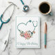 Tarjeta Estetoscopio Floral Cumpleaños Enfermera Médica Do