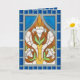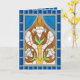 Desee a la familia y a los amigos una "Pascua feliz" con esta bonita tarjeta, algo menos abiertamente religiosa, que simula vidrios en ricos azul acuático, cálidos amarillos dorados, brillantes verdes primaverales y bronce. La carta, realizada en el estilo Liberty Style, la versión británica del Art Nouveau, está decorada en el interior y en el exterior con grandes paneles que representan estilizadas lirios de Pascua. + Crédito de la imagen (RT 02): Imágenes antiguas de una postal grabado en relieve en cromolitografía titulada Una feliz Pascua, Easter Hymns Series, No. 714, publicada originalmente por Raphael Tuck & Sons, Londres, Inglaterra, e impresa en Sajonia, Alemania, 1912, de la colección privada del diseñador.