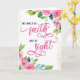 Anime a alguien a mantener la fe con este diseño de tipografía única que presenta este mensaje en letras de acuarela rosadas: "Caminamos por la fe, no por la vista". El diseño está acentuado con flores de acuarela y confeti dorado. En el interior tiene versículo bíblico, "Porque por fe andamos, no por vista. 2 Corintios 5:7" (Biblia Rey Jacobo) pero se puede personalizar para satisfacer sus necesidades personales.