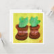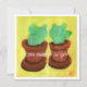 Dos cactus en macetas con fondo amarillo y texto.
