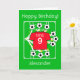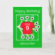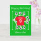 ¡Envíe felicitaciones de cumpleaños a su estrella del fútbol! Una tarjeta de cumpleaños de fútbol totalmente personalizable con una camiseta de fútbol toda roja con los colores de equipos como los de Mánchester, sobre un campo con balones de fútbol que han sido pateados en todas direcciones, con estrellas doradas. Personalice el saludo de cumpleaños; el número escrito que podría ser reemplazado por un apodo; el número que aquí representa una edad, así como el nombre que podría adaptarse al nombre de un club de fútbol favorito. ¡Diversión futbolística brillante, alegre y positiva para el fanático del fútbol / deportes!