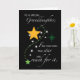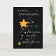 La estrella principal de color amarillo dorado está seguida por estrellas más pequeñas de color verde y blanco. El fondo negro inicia esta inspiradora tarjeta de felicitación por graduación para tu nieta. Expresa lo orgullosa que estás de ella mientras ella sigue su corazón y su pasión.