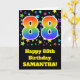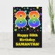 El frente de este emocionante, divertido y vibrante diseño de tarjetas de felicitación de cumpleaños presenta un colorido patrón de formas estrella, junto con el número "88" que presenta un espectro multicolor de arcoiris como el patrón gradiente, en un fondo de color negro. En la parte delantera también aparece un mensaje de bienvenida de cumpleaños, incluido un nombre de destinatario personalizado. El interior presenta un mensaje de bienvenida de cumpleaños personalizado, o tal vez podría ser borrado y dejado en blanco si se va a escribir un mensaje a mano. Una tarjeta de cumpleaños como esta podría ser una manera divertida de enviar deseos de cumpleaños a alguien que esté celebrando su ochenta y ocho cumpleaños. [~Z0000348]
