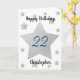 Estrellas acuáticas grises, tarjeta de cumpleaños número 22 para hijo, ahijado, nieto, etc. La parte delantera cuenta con estrellas de color gris acuático y un lugar para personalizar con el nombre del destinatario de cumpleaños. El mensaje de la tarjeta interior se puede personalizar fácilmente y la parte posterior con el año. Esto le haría conservar una tarjeta de cumpleaños número 22 única.