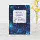 Una vista impresionante de un cielo galáctico, rico en azules, púrpura y negro profundos, salpicado por estrellas brillantes que parecen brillar con su propia luz. Las estrellas están esparcidas por el cielo, creando una sensación de profundidad e infinito, simbolizando las grandes posibilidades que aguardan cuando tu nieto cumple 17 años. Este diseño es a la vez atemporal y moderno, capturando la maravilla del universo y la emoción de un cumpleaños hito.