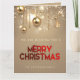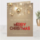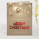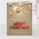 Envía alegría y paz a tu familia y amigos con esta hermosa postal de Navidades con brillantes bolas de Navidades dorados, estrellas y perlas doradas con "Feliz Navidad" en tipografía roja.