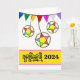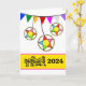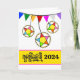 Año Nuevo camboyano jemer, tarjeta de saludo de papel temático Choul Chnam con decoraciones estelares de bambú adjuntas a coloridos conjuntos triangulares. Añade una fecha, cambia la fecha de la portada como quieras. Personaliza el verso dentro según sea necesario, Arte, imagen y verso copyright © Shoaff Ballanger Studios, 2024.