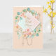Con una típica imagen religiosa católica del rosario sagrado con flores de melocotón eucalipto y la Santísima Virgen María, Nuestra Señora de la Gracia por dentro con un verso de escritura. En el fondo, se observa una pauta suiza de puntos blancos. Se pueden modificar todo el texto y las fuentes.