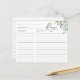 Tarjetas de recetas perfectas para que los huéspedes de la ducha de boda/novia completen la carta para que la novia esté. Con eucaliptos acuáticos y vegetación.