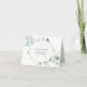 Diseñada para coordinar con nuestra colección de bodas Eucalyptus Greenery, esta tarjeta de personalizable Gracias cuenta con un follaje acuático de eucalipto verde de menta con un marco geométrico de borde blanco y dorado. Agregue texto personalizado con letras elegantes, así como un mensaje interno opcional.
