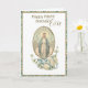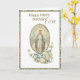 Esta es una hermosa imagen personalizada católica vintage de la Santísima Virgen María, Nuestra Señora de la Gracia con flores blancas, cinta azul envuelta alrededor de huevos de primavera. Las palabras en francés sobre la Santísima Virgen dicen "Oh María concebida sin pecado, ruega por nosotros que recurrimos a ti". Todo el texto y las fuentes pueden modificarse según la ocasión y el destinatario.