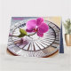 Tarjeta Exquisito orquídea rosa descansa en placa plateada