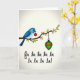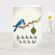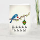 A cute digital drawing captures the holiday spirit in a calm way. In the center, a chubby blue bird sits on a brown branch. It holds a shiny red ornament in its beak, getting ready for the holidays. The branch has green leaves and red berries, adding to the festive theme. A green ornament with a red stripe hangs from the branch. The background is plain white, making the colors pop. The scene feels peaceful and happy, like a cozy winter day. Under the bird, the words "fa la la la la la la la la!" are written in fancy letters. The artwork is simple, yet detailed, perfect for spreading holiday cheer. 🎅🏼🎄🎁