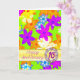 Una tarjeta de aniversario de bodas para regalar a quien amas. Fabulosas flores de 'op art' en colores brillantes. Una tarjeta vibrante que dice '¡FELIZ!'. Las flores multicolores están desparramadas sobre un fondo verde. La tarjeta se deja en blanco para usar como tarjeta de nota o para tu propio mensaje. Ver toda la gama de tarjetas en mi tienda. Todos los derechos de autor de la obra de arte son de Norma Cornes.