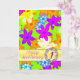 Una tarjeta de aniversario de boda para regalar a quien amas. Fabulosas flores 'op art' en colores brillantes. Una tarjeta vibrante que dice '¡FELIZ!'. Las flores multicolores están desparramadas sobre un fondo verde. La tarjeta se deja en blanco para usar como tarjeta de nota o para tu propio mensaje. Ver toda la gama de tarjetas en mi tienda. Todos los derechos de autor del arte por Norma Cornes.