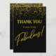 Complete your fabulous birthday celebration with this elegant thank you card from the Fabulous Birthday Photo Collection! Stunning black and gold glitter design with sophisticated printed effect creates a lasting impression. A memorable keepsake your guests will want to save! Personalize with your photo and heartfelt message on the back, using the suggested thank you text or creating your own personal note. Pair with matching invitations, RSVP cards, banners, party supplies, napkins, coasters, plates, cups, and decorations for a cohesive celebration. Available in printed or downloadable formats. For personalized customization assistance, contact remidevandesigns@gmail.com. RemideVan©