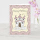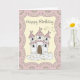 Castillo de cuento de hadas en las nubes rodeado de un borde rosa a juego.