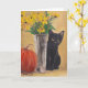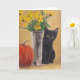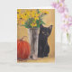 Esta tarjeta de saludo muestra una reproducción de mi pintura original de aceite de un gatito negro.