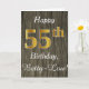 Características del este de cumpleaños diseño simples de tarjeta el mensaje "55.o cumpleaños feliz", con el "55.o" teniendo un falso oro-como aspecto. También ofrece un nombre personalizado, y un falso fondo de madera del aspecto. Podría ser dado alguien que está celebrando su quinto cumpleaños cincuenta.