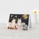 Familia de perro blanca de pastor alemán con los fantasmas, palos, calabazas que brillan intensamente en el claro de luna el Halloween