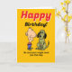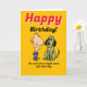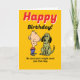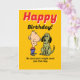 Esta graciosa tarjeta de felicitación de cumpleaños fue diseñada con una mujer que recientemente se ha divorciado o se ha roto, en mente. El exterior presenta coloridos dibujos de un hombre y un perro, por los cuales el remitente le promete a la mujer de cumpleaños un "perro" si el ahora soltero destinatario es bueno. El interior identifica sorprendentemente al "perro" como un hombre, con quien el receptor podría relacionarse con su exmarido, o ex novio. La expresión humorística de la carta capitaliza la conocida tendencia de las mujeres de referirse a los hombres que son infieles, mujeres o simplemente caóticos en relaciones románticas como "perros".