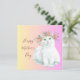 La tarjeta del Día de la Madre para las mamás del amor del gato muestra al gato blanco con corona floral sobre fondo degradado