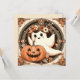 Aquí hay una bonita ilustración de Halloween de un fantasma y una calabaza. Esta tarjeta muestra al fantasma detrás de una calabaza y tiene un toque de estilo art déco. Es una excelente tarjeta de Halloween y es perfecta para saludos de la temporada espeluznante, invitaciones o para acompañar un regalo. #halloween #fantasma #calabaza #jackolantern
