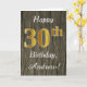 Tarjeta Faux Wood, Faux Gold 30th Birthday + Custom Name
