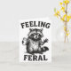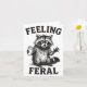 Tarjeta Feeling Feral Raccoon Drink Coffee Funny Trash Pan