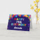 Feliz 14º cumpleaños, Colorida tarjeta azul de la Marina Confetti con nombre personalizado. Para una mayor personalización, haga clic en el botón "Personalizar" y utilice nuestra herramienta de diseño para modificar esta plantilla.