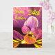 Una hermosa flor rosa y amarilla de pansy con un saludo de cumpleaños.