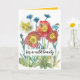 "Para una belleza salvaje" feliz cumpleaños a una tarjeta de saludo especial de un amigo decorada con flores silvestres de amapolas rojas y blancas y cornflores azules dibujadas a mano con tinta y pintadas con acuarela en un bonito fondo blanco. En el interior hay una sombra de amarillo cálido brillante y texto que se puede editar para adaptarlo a sus necesidades. Una flor de cosmos naranja y una abeja de miel visitante decoran el lado opuesto.