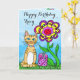 Feliz cumpleaños, Whimsical Cat y Flores Card. ¡bonito tarjeta de cumpleaños colorida para la hermana, la mamá, la abuela, la amiga, la tía o cualquiera!