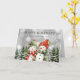 Tarjeta Felices Fiestas Bosque de muñecos de nieve Poinset