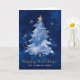 Envíe elegantes saludos de vacaciones con esta impresionante tarjeta de Navidades azul marino con un árbol navideño de acuarela envuelto en cinta dorada y coronado con una estrella dorada. Rodeado de delicados copos de nieve dorados sobre un fondo azul profundo, este diseño exuberante de elegancia invernal refinada. Perfecto para enviar cálidos deseos de vacaciones de una persona, pareja o familia que ama los diseños atemporales y elegantes de Navidades.