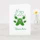 Tarjeta Felices fiestas perro verde mascota pata caramelo