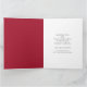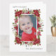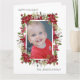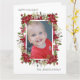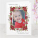 Tarjeta de felicitación plegada "Happy Holidays" moderna y elegante. La parte delantera de esta hermosa tarjeta tiene poinsettias rojas y vegetación en un fondo blanco, y está personalizada con tu foto favorita. Texto, que dice "Felices Fiestas" e incluye tu apellido es completamente personalizable. El interior de esta tarjeta es rojo y blanco y tiene un mensaje personalizado y su nombre. Póngase en contacto con nosotros para obtener ayuda sobre sus personalizaciones o para solicitar productos de correspondencia o coordinación.