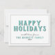 Felices vacaciones de fondo turquesa y tarjeta de Navidades de tipografía blanca. La parte trasera es turquesa con copos de nieve blancos. El texto está dentro de dos marcos - personalice la tarjeta con su nombre y número de año.